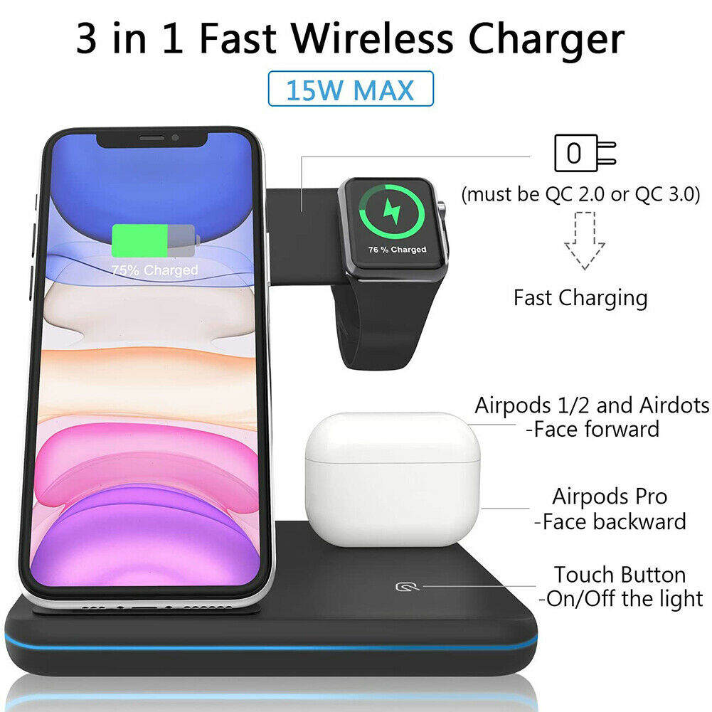 3in1 Wireless Charger Dock Charging Station For iPhone 12 11 Pro Max XS iWatch