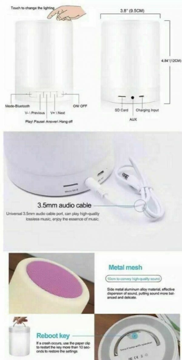 Led night lamp +Wireless Bluetooth Stereo Speaker Touch Portable Night Light New